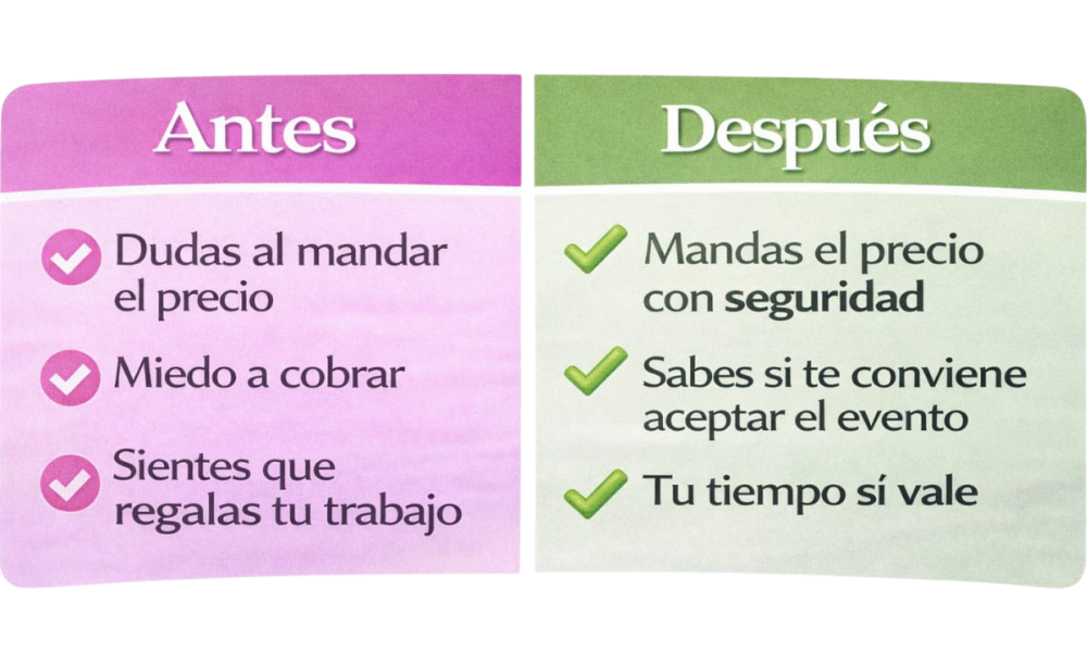 No te preocupes más por cuánto cobrar. Con esta guía entenderás claramente si estás cobrando bien o si estás perdiendo dinero sin darte cuenta en cada decoración.